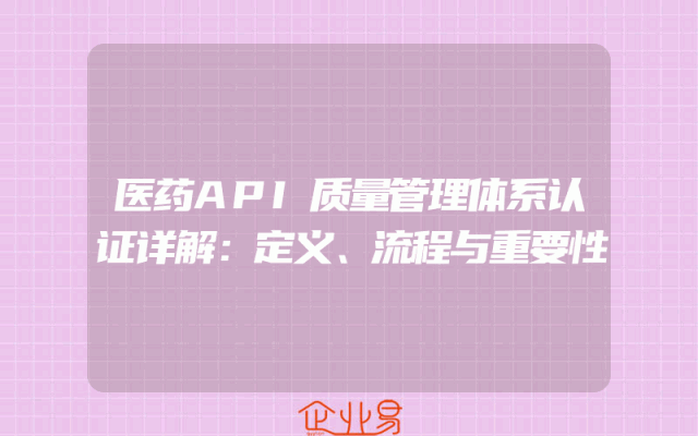- 医药API质量管理体系认证详解:定义、流程与重要性