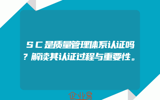 - SC是质量管理体系认证吗?解读其认证过程与重要性一、SC的含义及质量管理体系认证概述在当今的商业环境中,SC经常被提及,它代表质量管理体系认证的一种标识。质量管理体系认证是确保组织能够按照既定的标准和要求,持续提供高质量产品和服务的