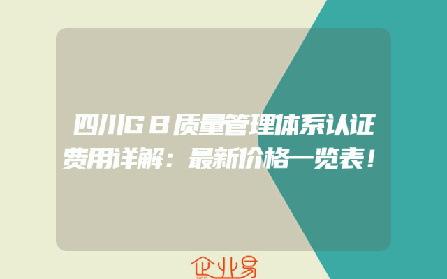 - 四川GB质量管理体系认证费用详解:最新价格一览表!