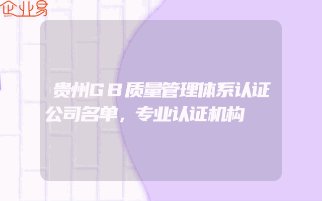 - 贵州GB质量管理体系认证公司名单,专业认证机构