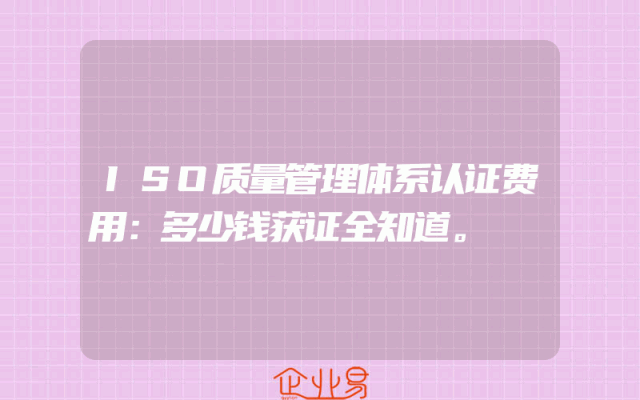 - ISO质量管理体系认证费用:多少钱获证全知道。