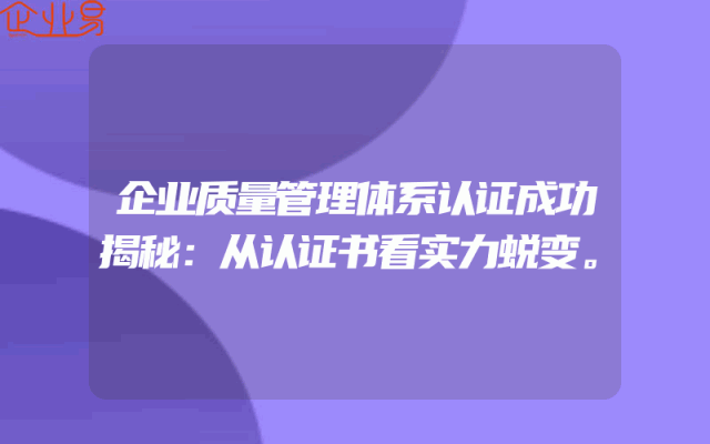 - 企业质量管理体系认证成功揭秘:从认证书看实力蜕变。