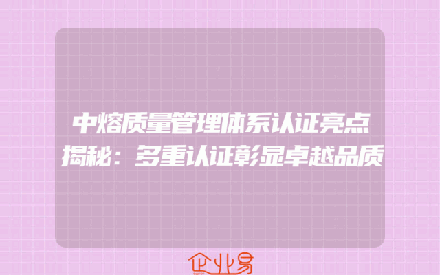 - 中熔质量管理体系认证亮点揭秘:多重认证彰显卓越品质