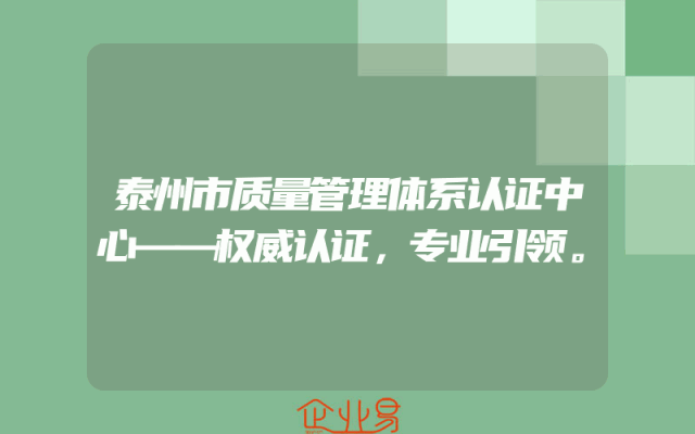 - 泰州市质量管理体系认证中心——权威认证,专业引领。