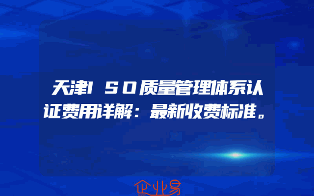 - 天津ISO质量管理体系认证费用详解:最新收费标准。