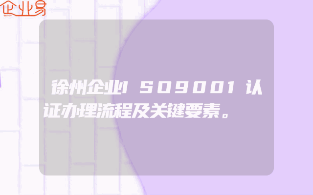 - 徐州企业ISO9001认证办理流程及关键要素。