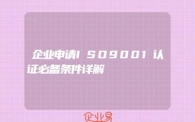 - 企业申请ISO9001认证必备条件详解一、了解ISO9001质量管理体系标准ISO9001认证是国际上广泛采用的质量管理体系认证标准,企业在申请之前,首先需要对该标准有深入的了解。这包括熟悉质量管理体系的基本原则、要求和框架,以及了解如何通