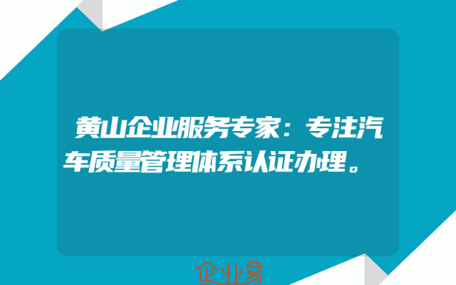 - 黄山企业服务专家:专注汽车质量管理体系认证办理。