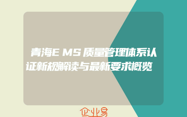 - 青海EMS质量管理体系认证新规解读与最新要求概览