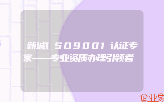 - 新城ISO9001认证专家——专业资质办理引领者