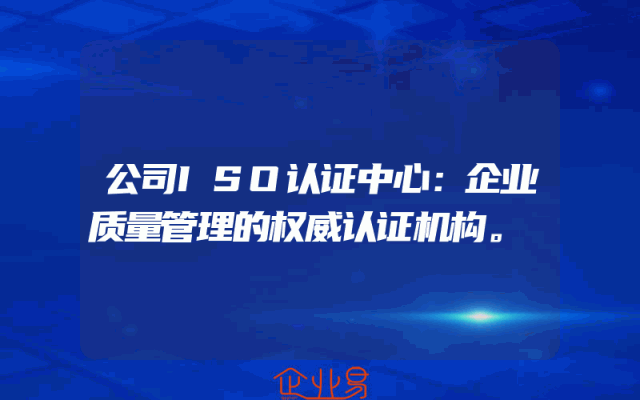 - 公司ISO认证中心:企业质量管理的权威认证机构。