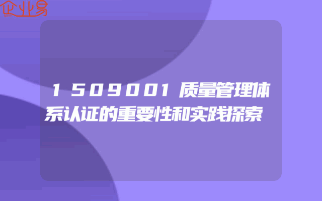 - 1509001质量管理体系认证的重要性和实践探索