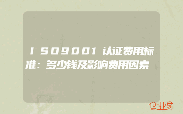- ISO9001认证费用标准:多少钱及影响费用因素