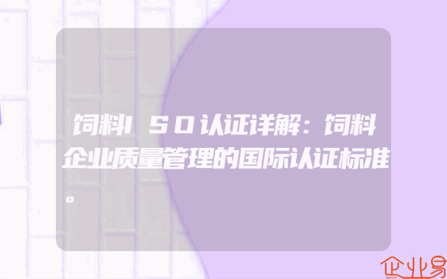- 饲料ISO认证详解:饲料企业质量管理的国际认证标准。