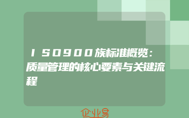- ISO900族标准概览:质量管理的核心要素与关键流程一、ISO900族标准的概述ISO900族标准是国际标准化组织(ISO)制定的一套质量管理体系标准,旨在帮助企业提高质量管理水平,确保产品和服务的质量,满足客户需求。这些标准已成为全球企业