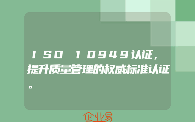 - ISO 10949认证,提升质量管理的权威标准认证。