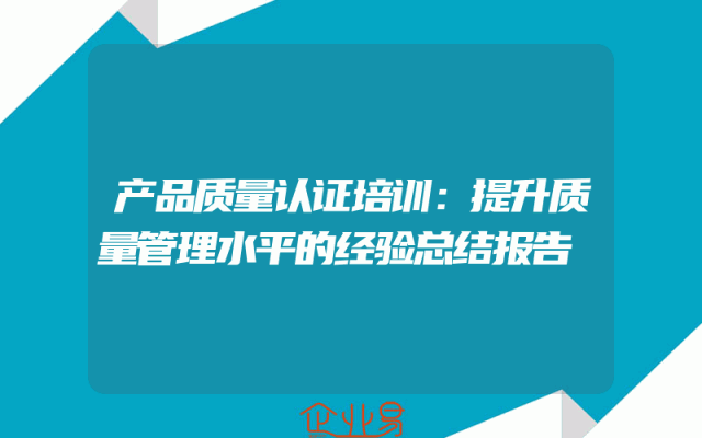 - 产品质量认证培训:提升质量管理水平的经验总结报告