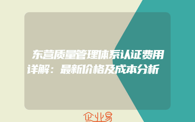 - 东营质量管理体系认证费用详解:最新价格及成本分析