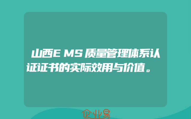- 山西EMS质量管理体系认证证书的实际效用与价值。