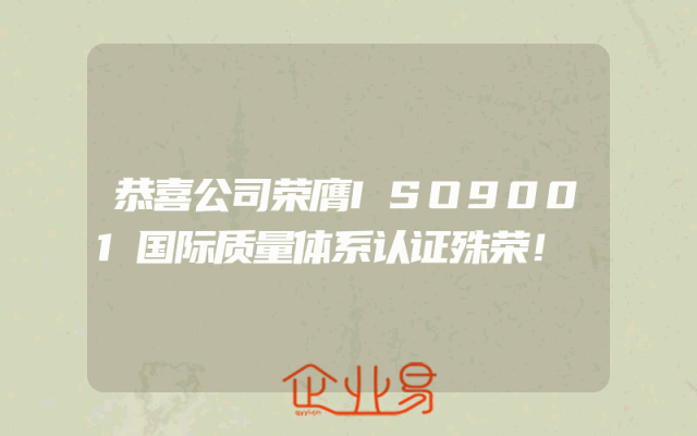 - 恭喜公司荣膺ISO9001国际质量体系认证殊荣!