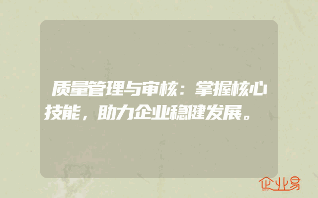 - 质量管理与审核:掌握核心技能,助力企业稳健发展。