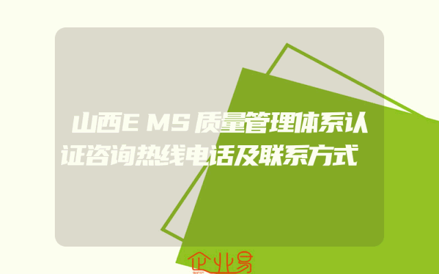 - 山西EMS质量管理体系认证咨询热线电话及联系方式