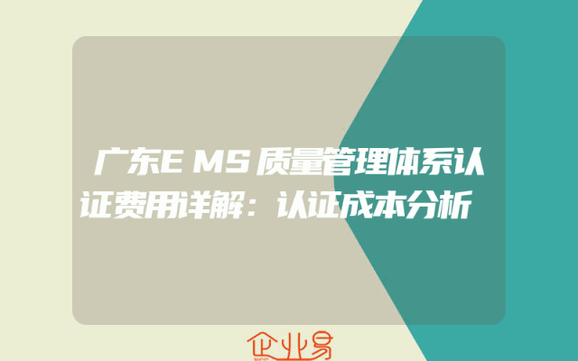 - 广东EMS质量管理体系认证费用详解:认证成本分析