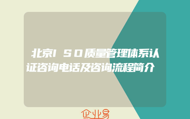 - 北京ISO质量管理体系认证咨询电话及咨询流程简介