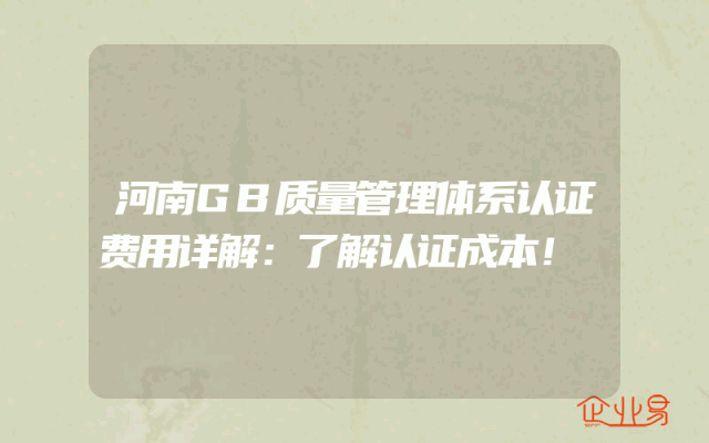 - 河南GB质量管理体系认证费用详解:了解认证成本!