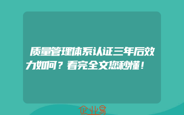 - 质量管理体系认证三年后效力如何?看完全文您秒懂!