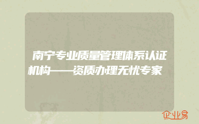 - 南宁专业质量管理体系认证机构——资质办理无忧专家