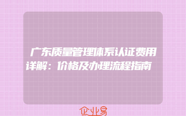 - 广东质量管理体系认证费用详解:价格及办理流程指南