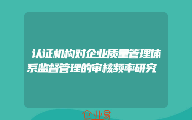 - 认证机构对企业质量管理体系监督管理的审核频率研究