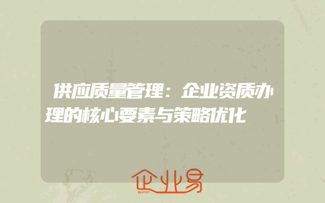 - 供应质量管理:企业资质办理的核心要素与策略优化