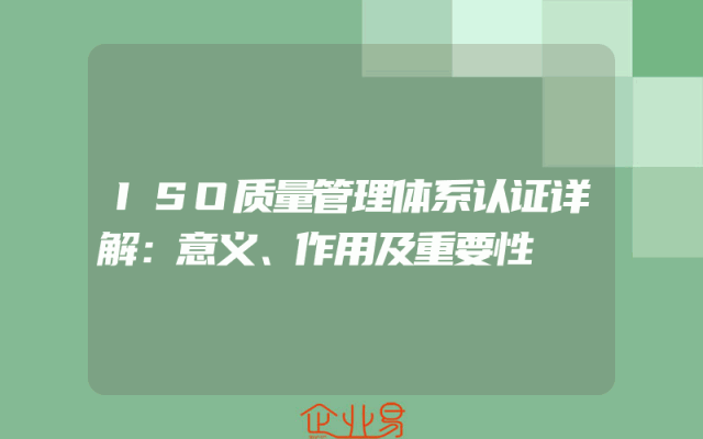 - ISO质量管理体系认证详解:意义、作用及重要性