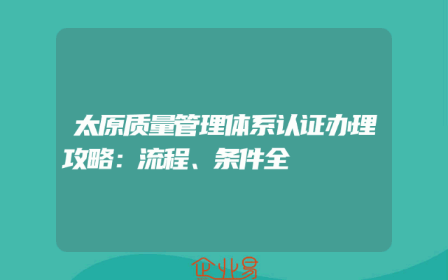 - 太原质量管理体系认证办理攻略:流程、条件全