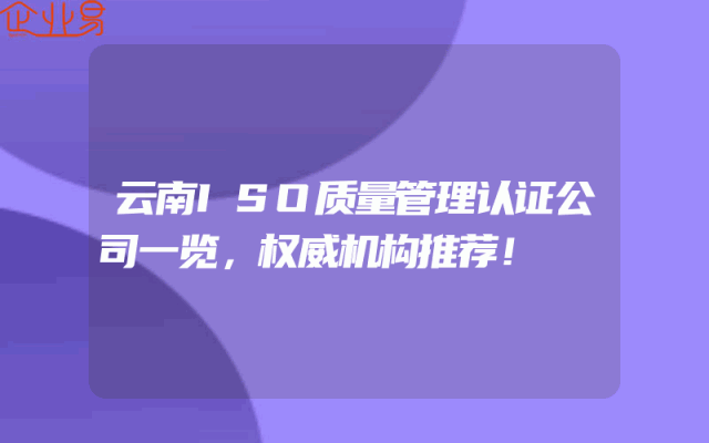 - 云南ISO质量管理认证公司一览,权威机构推荐!
