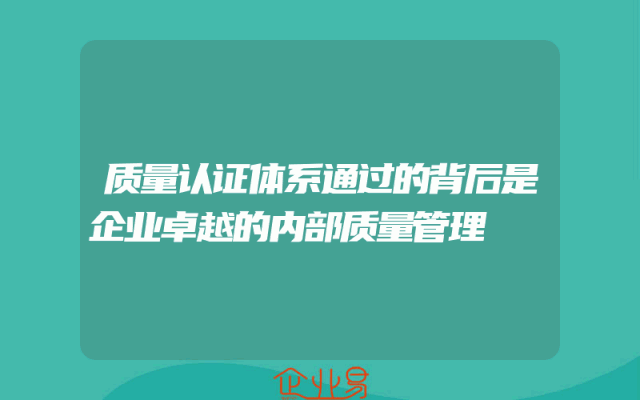 - 质量认证体系通过的背后是企业卓越的内部质量管理