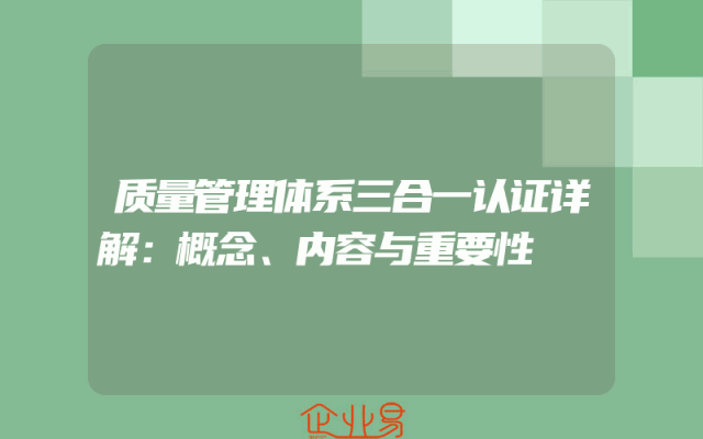 - 质量管理体系三合一认证详解:概念、内容与重要性