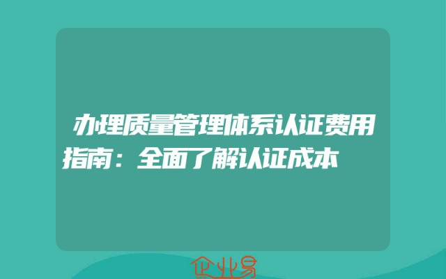 - 办理质量管理体系认证费用指南:全面了解认证成本