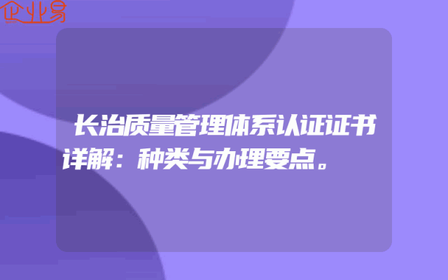 - 长治质量管理体系认证证书详解:种类与办理要点。