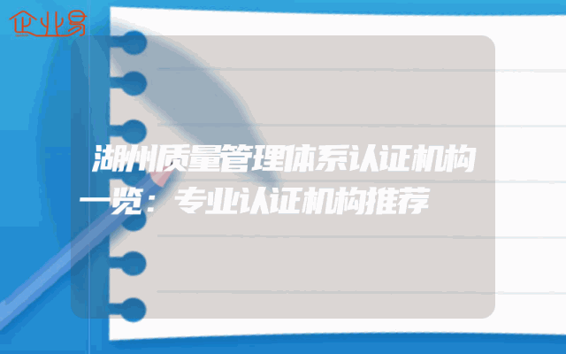 - 湖州质量管理体系认证机构一览:专业认证机构推荐