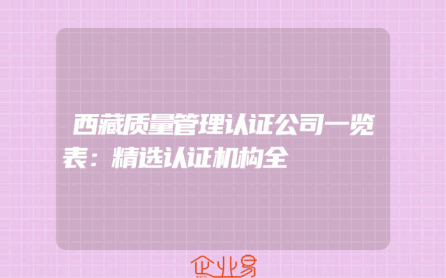 - 西藏质量管理认证公司一览表:精选认证机构全