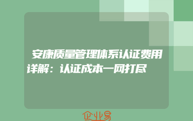 - 安康质量管理体系认证费用详解:认证成本一网打尽