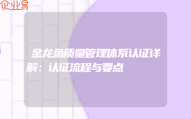 - 金龙鱼质量管理体系认证详解:认证流程与要点