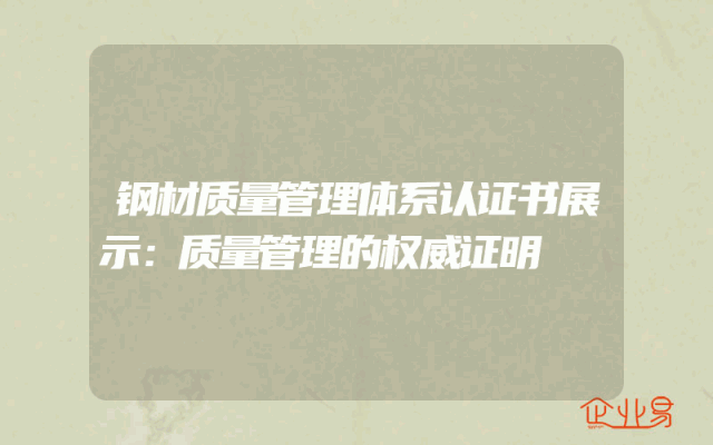 - 钢材质量管理体系认证书展示:质量管理的权威证明