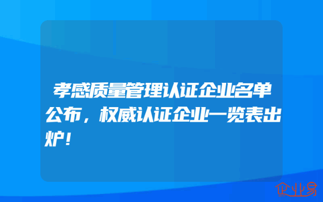 - 孝感质量管理认证企业名单公布,权威认证企业一览表出炉!