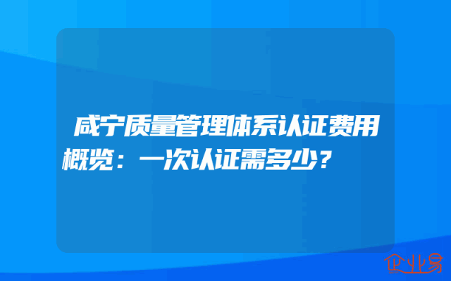 - 咸宁质量管理体系认证费用概览:一次认证需多少?