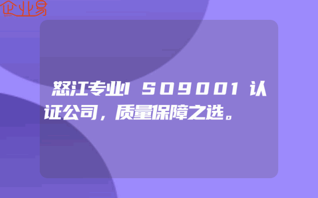 - 怒江专业ISO9001认证公司,质量保障之选。