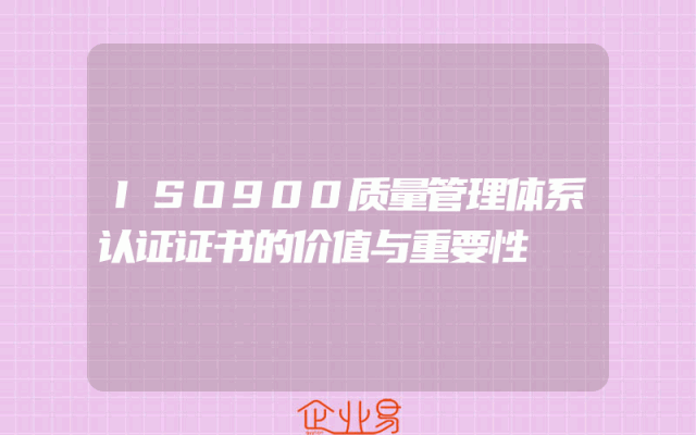 - ISO900质量管理体系认证证书的价值与重要性一、质量管理体系认证概述ISO900质量管理体系认证是一种国际化的质量管理体系认证标准,主要强调组织内部的系统管理和过程控制。它通过对企业的研发、生产、销售和服务等各环节进行标准化管理,确保产品